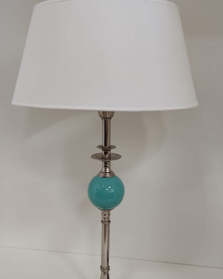 LAMPARA DE MESA BOCHA Y HUEVO TURQUESA