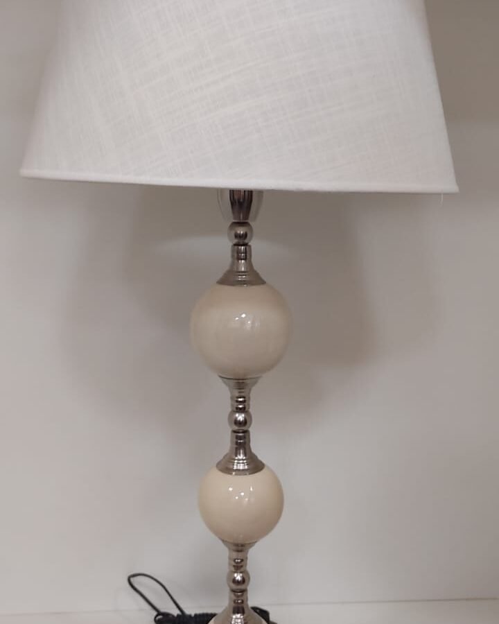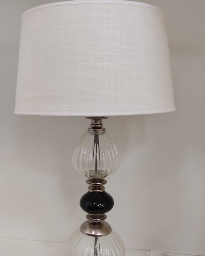 LAMPARA DE MESA DOS BOCHAS VIDRIOS Y NEGRA
