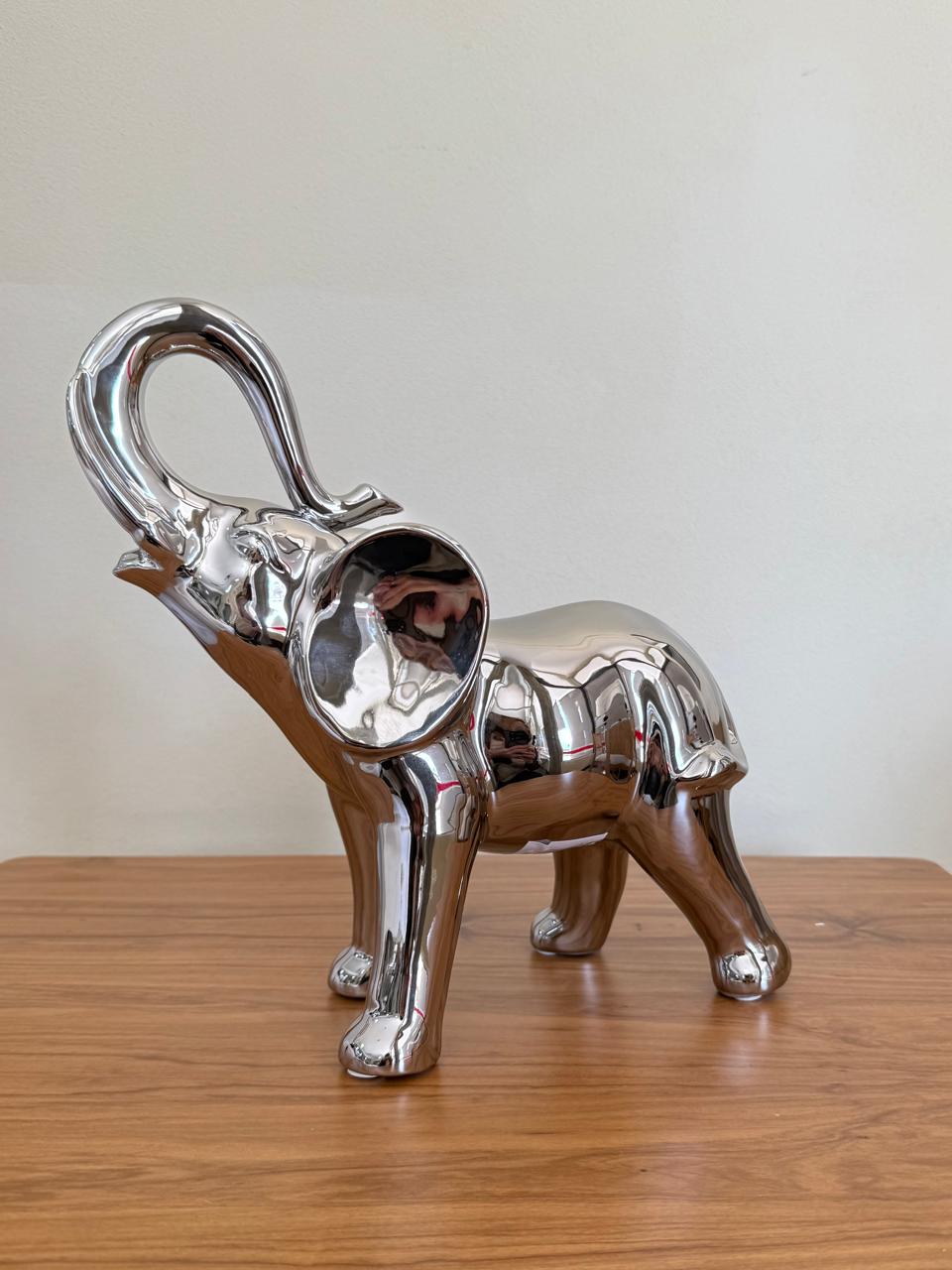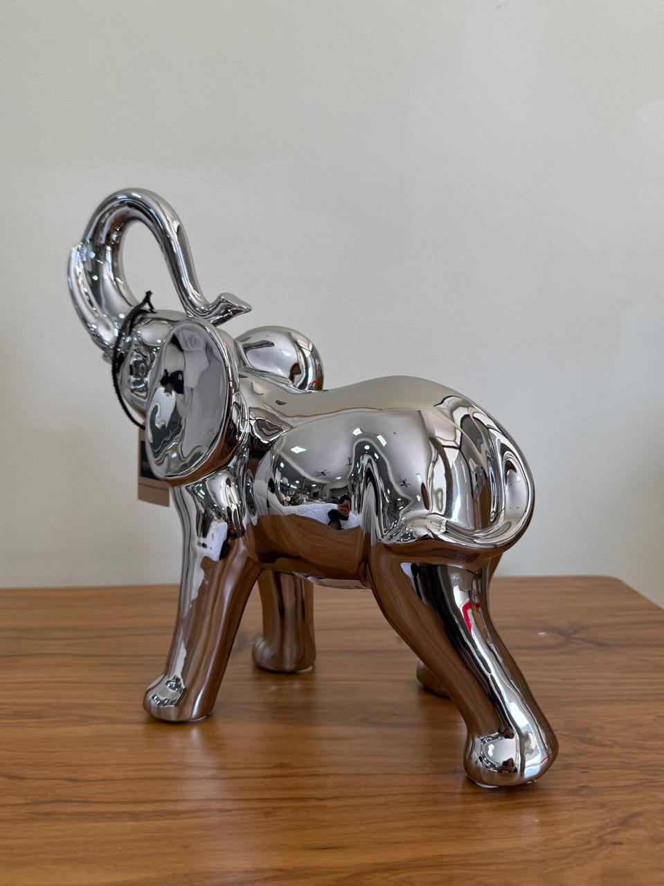 FIGURA ELEFANTE CERAMICA PLATEADO