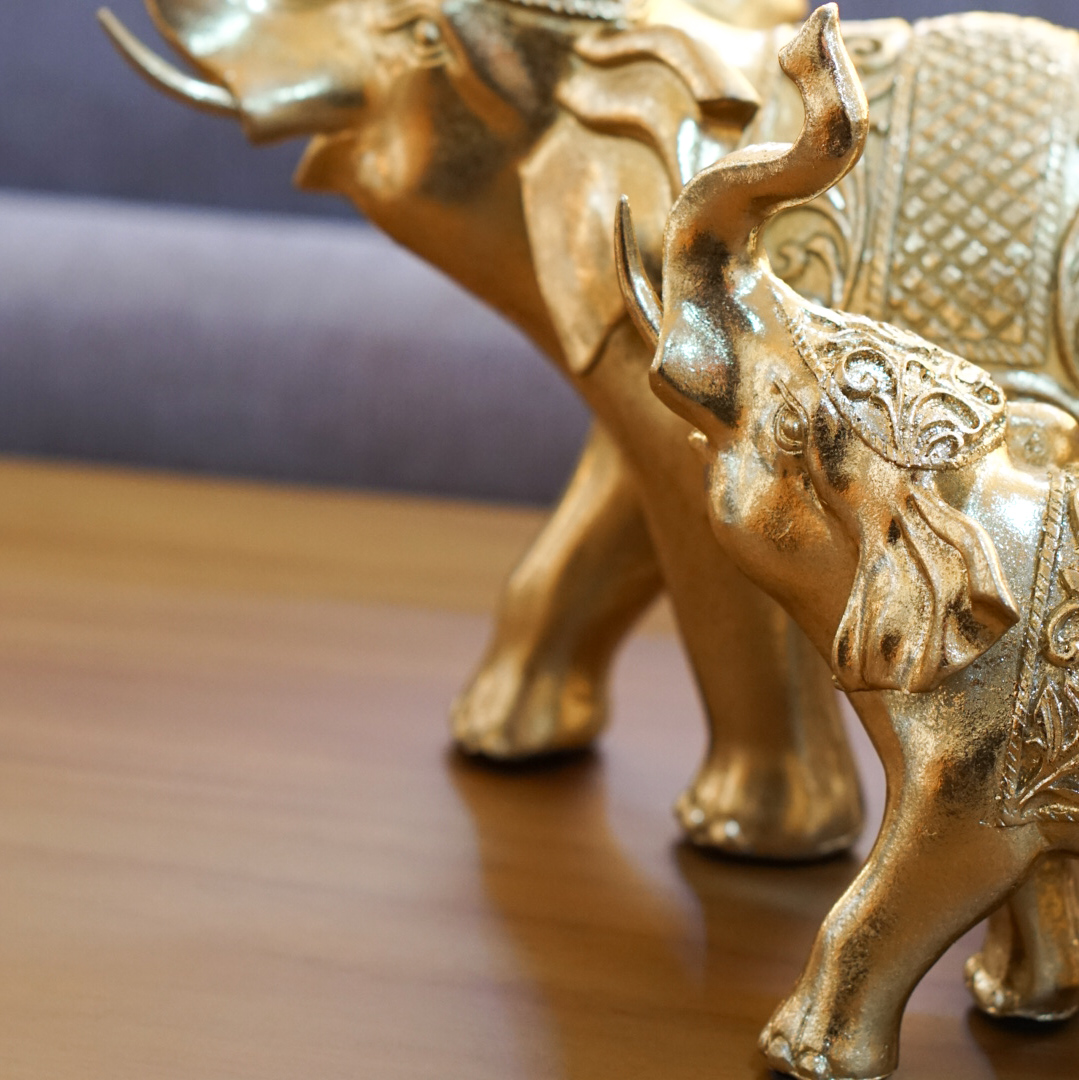 FIGURAS ELEFANTES DORADOS x2