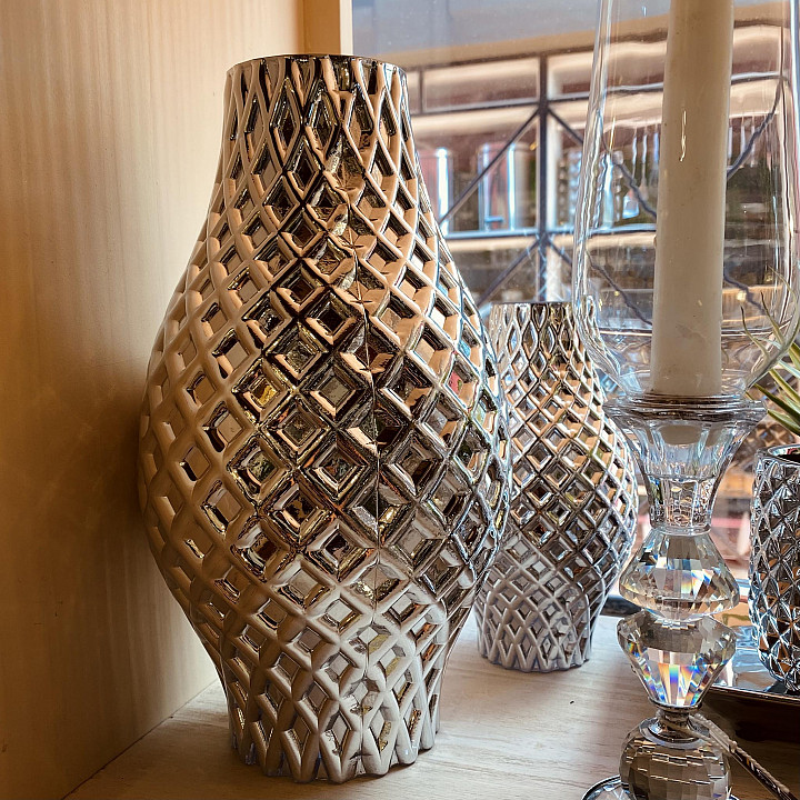 FLORERO VIDRIO PLATA