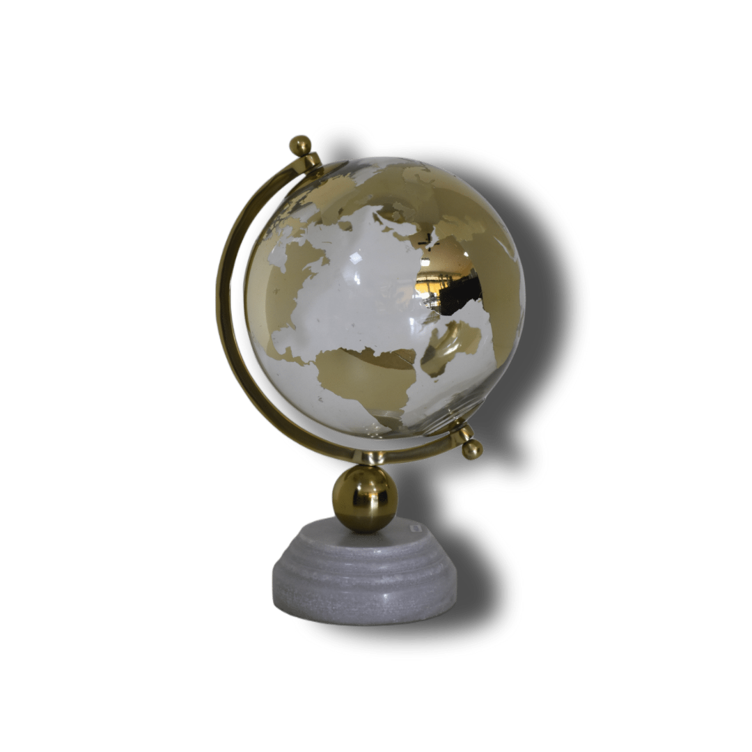 GLOBO TERRAQUEO VIDRIO DORADO CON BASE DE PIEDRA