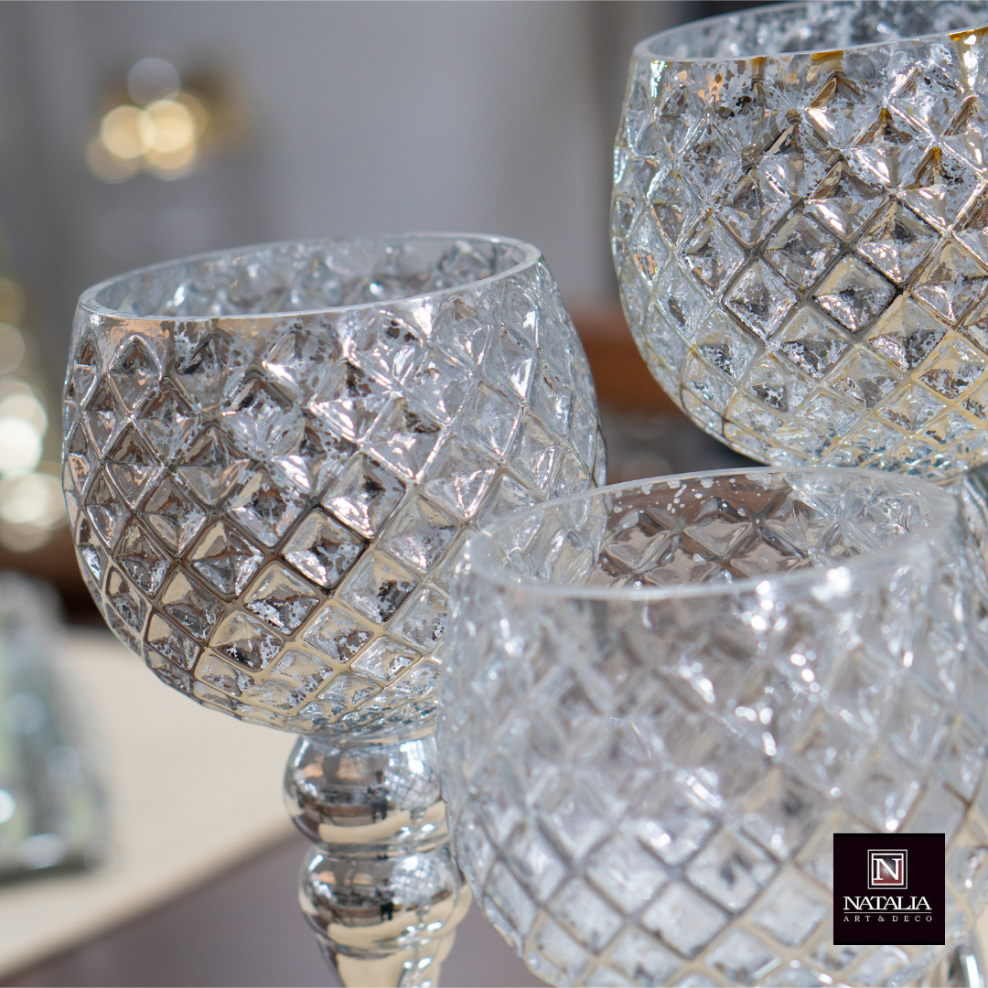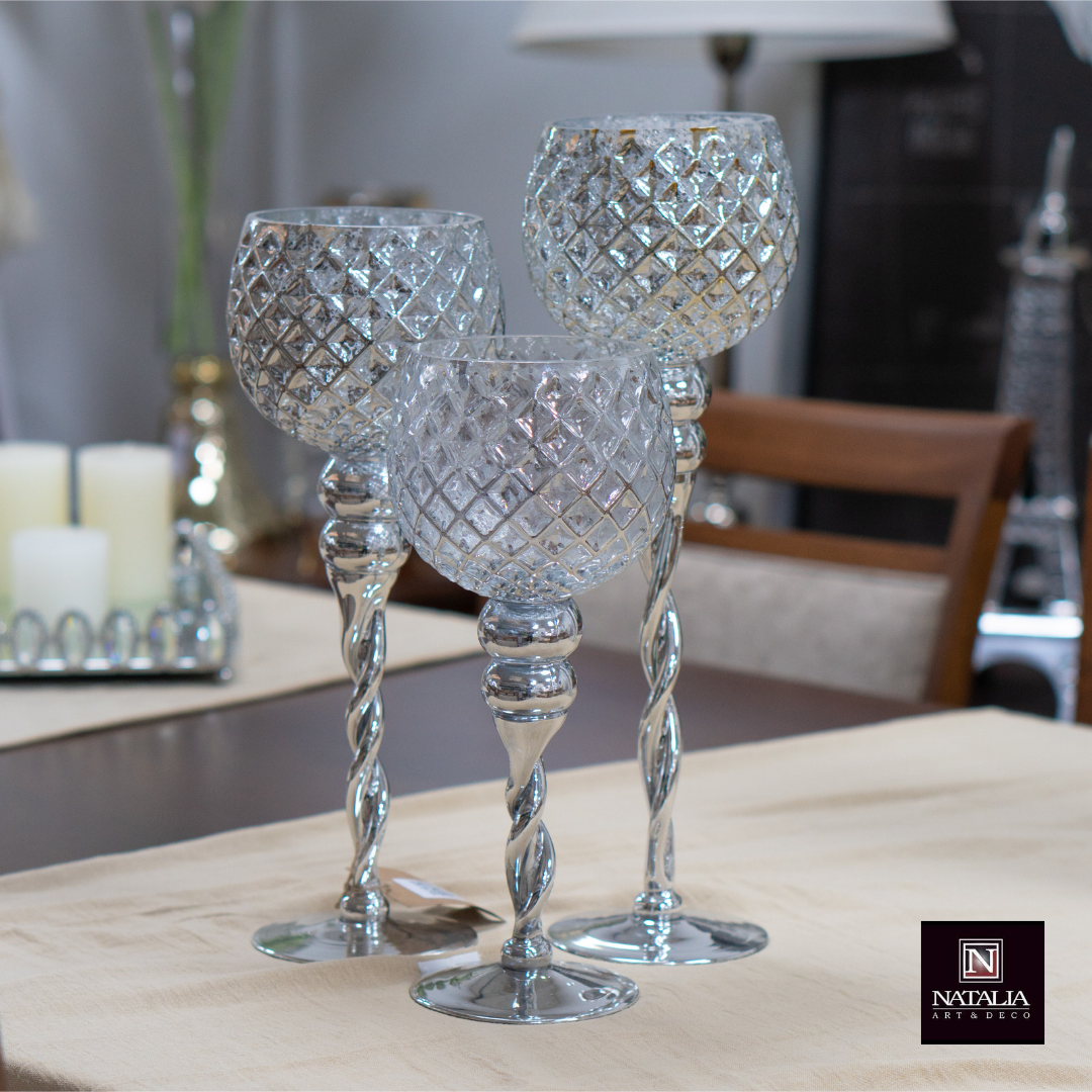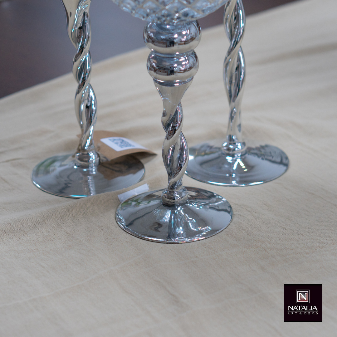 SET X3 CANDELABROS VIDRIO PLATEADO